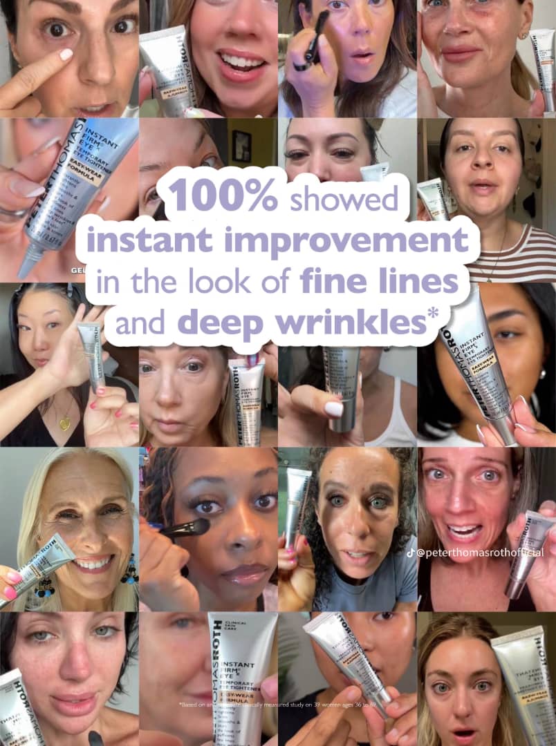 This formula provides an instant temporary tightening effect that visibly reduces the appearance of under-eye puffiness, fine lines, crow’s feet, and wrinkles. Results are visible within minutes and can last for several hours.